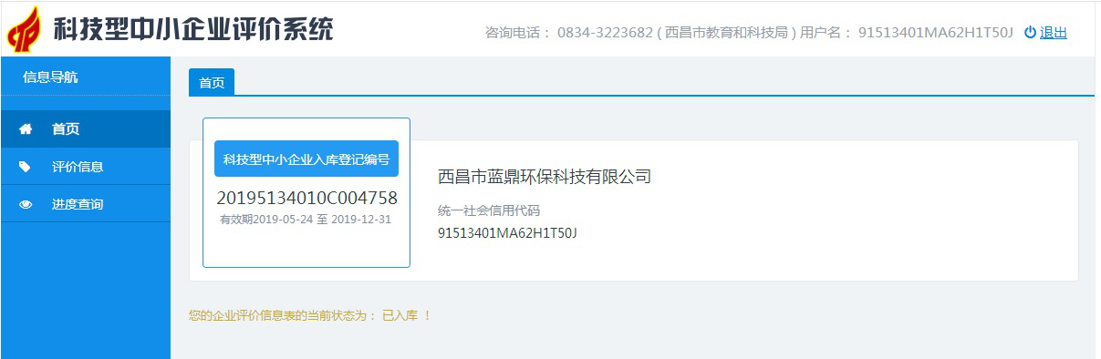 西昌市藍(lán)鼎環(huán)?萍加邢薰、攀枝花市藍(lán)鼎環(huán)?萍加邢薰居5月10日同時(shí)通過(guò)四川省科學(xué)技術(shù)廳科技型中小企業(yè)認(rèn)證審核,并在5月10日至5月23日進(jìn)行網(wǎng)上公示,年5月24日兩公司均公示合格獲得科技型中小企業(yè)認(rèn)證入庫(kù)編號(hào)。