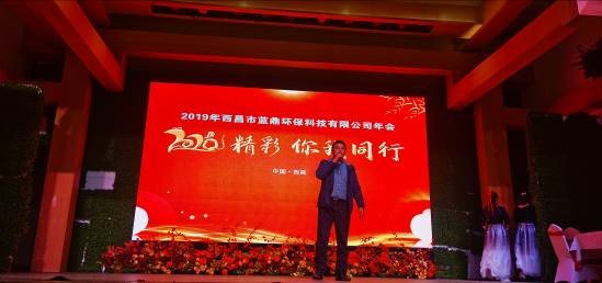 音樂漸漸停止,屏幕悄然變化,伴隨著激昂的音樂,主持人盛裝登場(chǎng),在表達(dá)了對(duì)在場(chǎng)嘉賓的歡迎以及對(duì)身處生產(chǎn)一線無法到來人員的感謝后,西昌藍(lán)鼎執(zhí)行總經(jīng)理李富勇走上舞臺(tái),為本次年會(huì)做開幕詞,總結(jié)了過去一年的種種,表達(dá)了對(duì)公司全體成員一年努力的肯定,闡述了未來一年濕法脫硫脫硝項(xiàng)目建成落地所要面對(duì)的各種挑戰(zhàn)。隨后是西昌藍(lán)鼎生產(chǎn)部部長(zhǎng)孫小剛上臺(tái),為大家宣布2019年度藍(lán)鼎“十大事件”。隨后本次年會(huì)文藝表演正式開始。