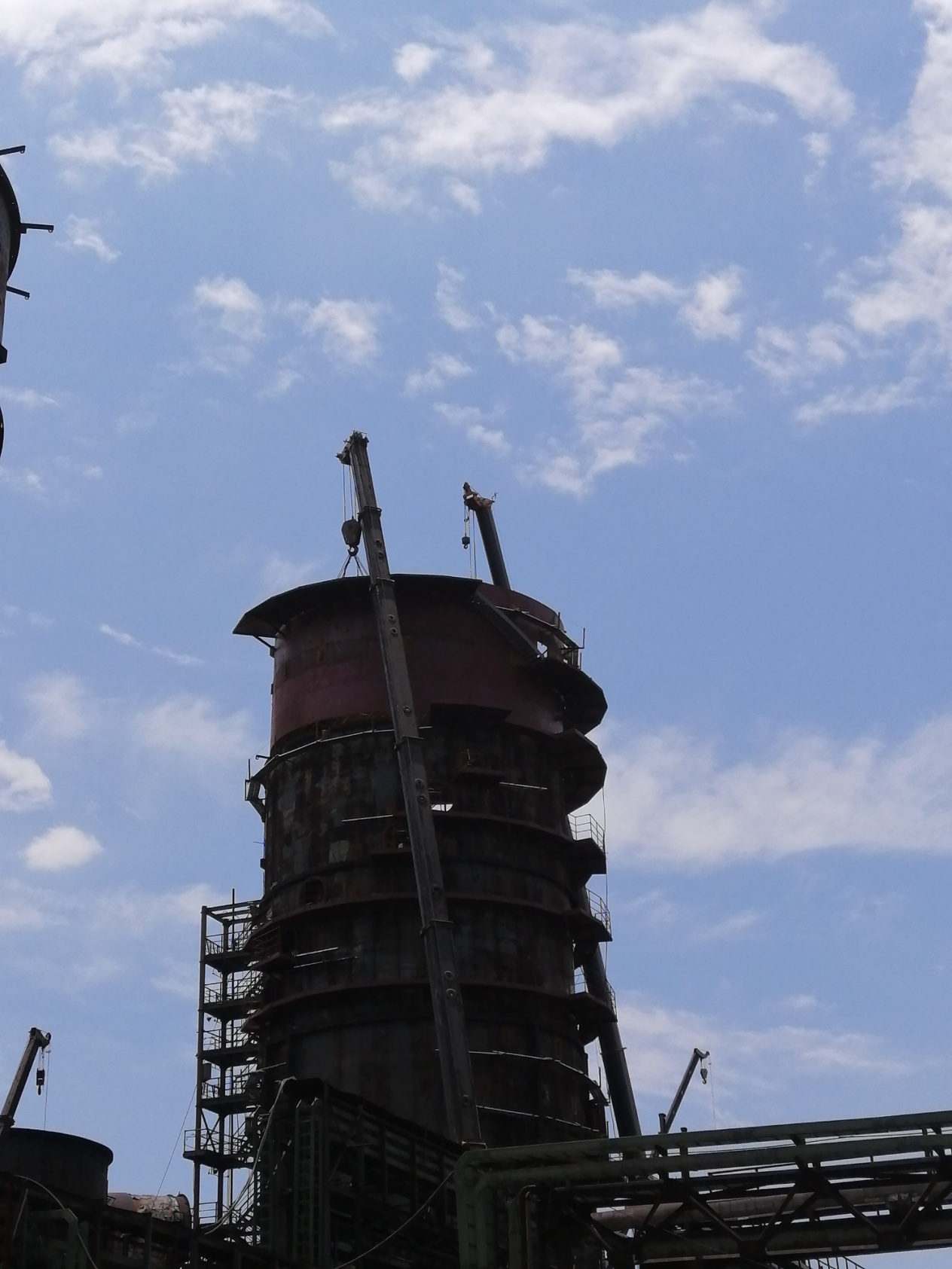 6月1日天氣晴朗,風力1級,具備良好的施工條件,7:10分兩臺180噸的吊車準備就緒,吊裝人員系好了吊繩,技術員確定吊裝位置,安全員仔細檢查吊繩是否完好,各項工序準備就緒,指吊員準確指揮兩臺吊車同時起吊,12:30分56噸重的除霧器鋼結(jié)構(gòu)吊裝到位,穩(wěn)穩(wěn)的焊接在脫硫塔頂部。此次除霧器鋼結(jié)構(gòu)的成功安裝為10月31日順利投產(chǎn)奠定了堅實的基礎。