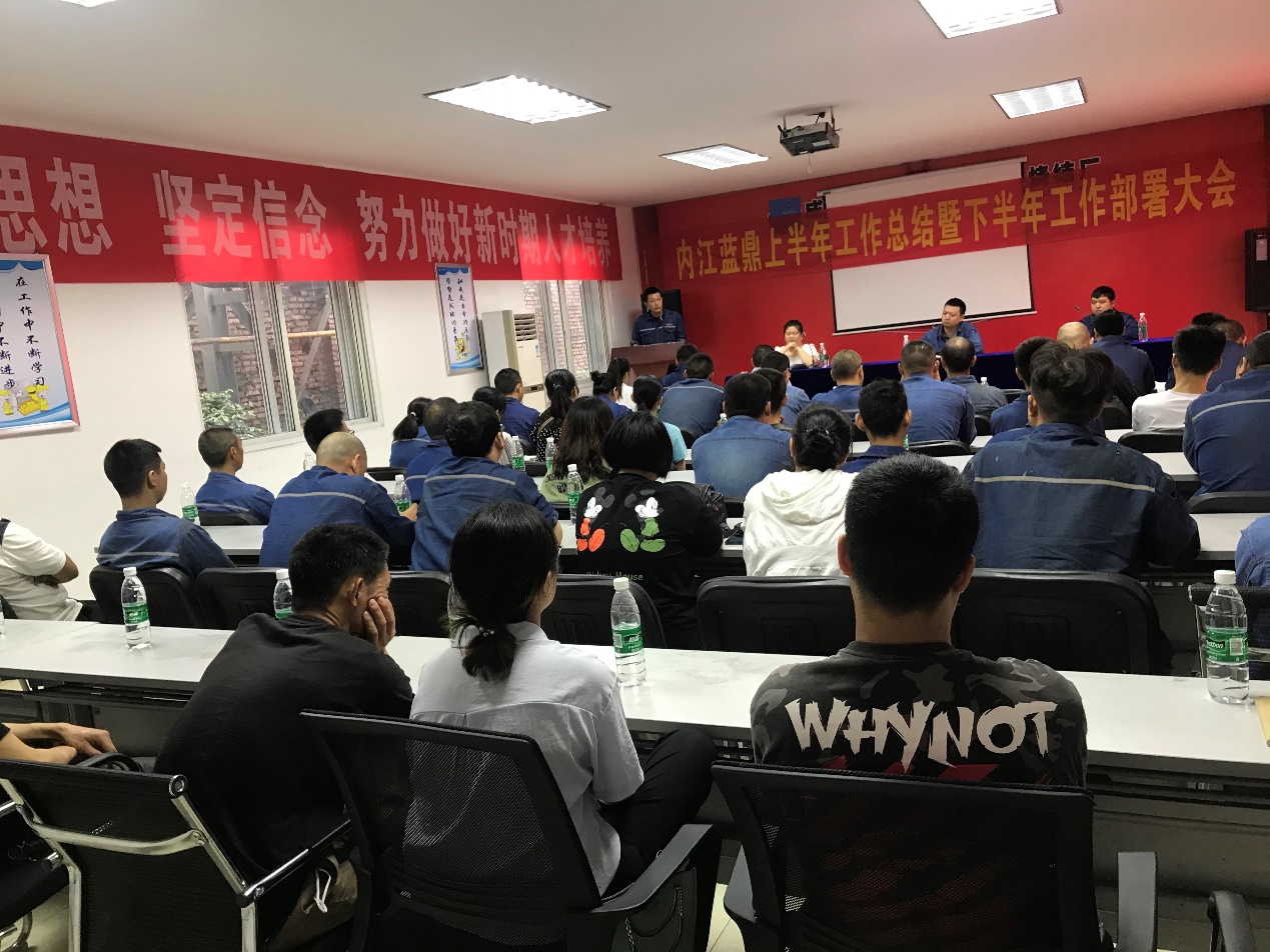 最后,生產(chǎn)部副部長曾中東全面總結(jié)回顧了內(nèi)江藍鼎上半年的各項工作,客觀分析了內(nèi)江藍鼎現(xiàn)階段的形勢,并對下半年的主要工作作了部署。他強調(diào),安全、綠化美化、人才培養(yǎng)、經(jīng)濟效益是內(nèi)江藍鼎的四個發(fā)展方向,內(nèi)江藍鼎三年合同四個階段性工作,要成為有組織、有紀律的團隊。各級管理人員,要勇于擔當、勤于思考,自覺主動做好工作;要加強工作的時效性。并明確內(nèi)江藍每季度將召開一次全體大會,所有員工都可以大膽提出問題、想法及思路。