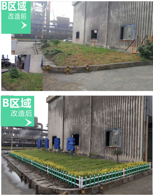 9月內(nèi)江藍(lán)鼎成立了以生產(chǎn)部副部長曾中東為組長,副部長陳威、人力行政部吳丹為組員的綠化專項小組。從綠化公司的對比選擇到現(xiàn)場進(jìn)行實地測量制定設(shè)計方案,從廣告字、圍欄、草坪、苗木、花草的對比選擇到工期監(jiān)督,綠化專項小組都親力親為。最后確定利用球團(tuán)現(xiàn)有花草材料移栽等方式對燒結(jié)1#脫硫塔AB兩塊區(qū)域進(jìn)行集中改造的方案。改造歷時半個月。改造后的現(xiàn)場:茂盛的草坪、四季花期的含笑、三角梅、整齊的迎賓欄,現(xiàn)場比以前更整潔了,環(huán)境更美了。