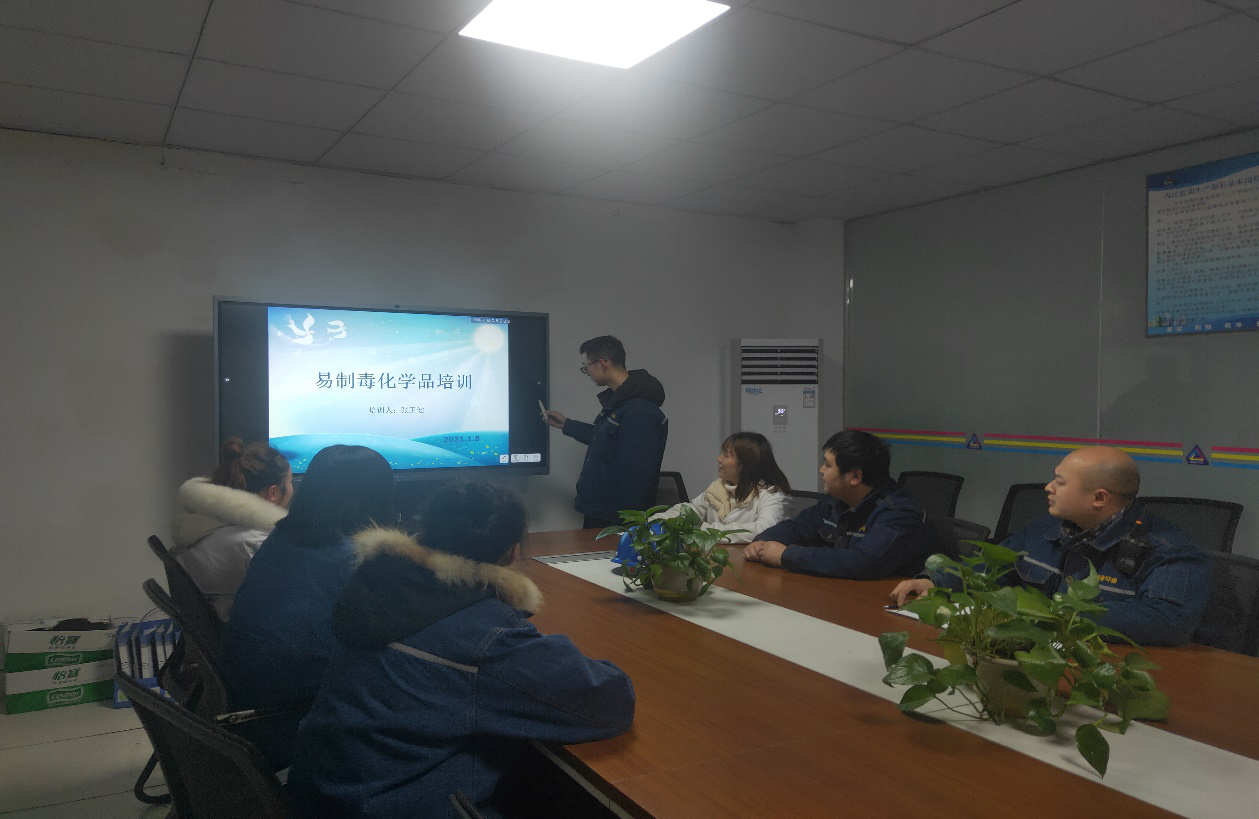 2020年12月24日威遠(yuǎn)縣公安局禁毒大隊(duì)對(duì)內(nèi)江藍(lán)鼎化驗(yàn)室易制毒化學(xué)品(鹽酸、硫酸)保存、使用、資料進(jìn)行檢查。檢查結(jié)束后禁毒大隊(duì)張警官對(duì)相關(guān)人員進(jìn)行專業(yè)培訓(xùn),并指出需改進(jìn)完善的地方。