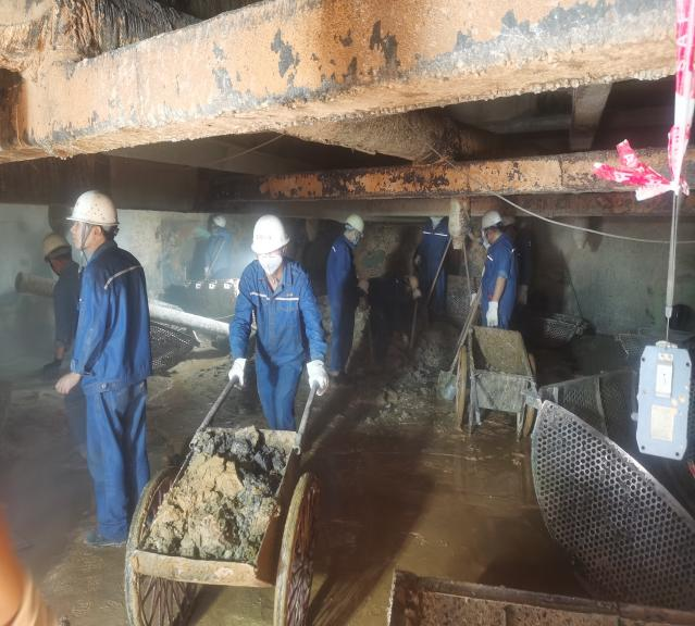 生產(chǎn)班組人員清理吸收塔沉淀物清理