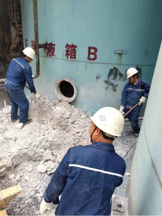 為確保春節(jié)前球磨檢修,生產(chǎn)上不受影響,2021年12月8號生產(chǎn)部下達了清理2#石灰石漿液緩沖箱的任務(wù)。接到任務(wù)后,各班組積極響應(yīng),在6燒、球團檢修期間,班組缺人的情況下,充分優(yōu)化人員進行清理工作。在大家的共同努力下,在2022年1月7號完成清理工作,并投入使用,為球磨檢修,生產(chǎn)穩(wěn)定運行提供了保障。