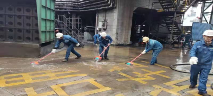攀藍(lán)鼎球團(tuán)脫硫系統(tǒng)現(xiàn)場,由于位置低洼,在暴雨極端天氣下雨水會大量流入吸收塔地溝,可能會導(dǎo)致地坑抽不贏,混合雨水漿液溢流到系統(tǒng)外,有流到邊坡入江的風(fēng)險。本次演練的目的是為確保在暴雨極端天氣,汛情緊急的情況下,能夠做好防洪防汛處置,提高環(huán)保管控意識。