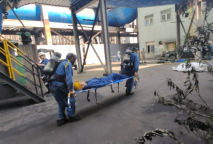 5.31日上午10時生產(chǎn)部接到有限空間煤氣中毒事故報告,在燒結(jié)一期濕法由于煙道檢修,有一名工人煤氣中毒后暈倒。生產(chǎn)部馬上啟動應(yīng)急救援,10:10分兩名救援隊員攜帶擔(dān)架、急救藥箱、空氣呼吸機(jī)等器材進(jìn)入演練場地,經(jīng)過現(xiàn)場查看,受傷人員輕度昏迷,救援隊員將受傷人員抬在擔(dān)架上,轉(zhuǎn)移至安全場所進(jìn)行人工呼吸,10:20受傷人員恢復(fù)意識。