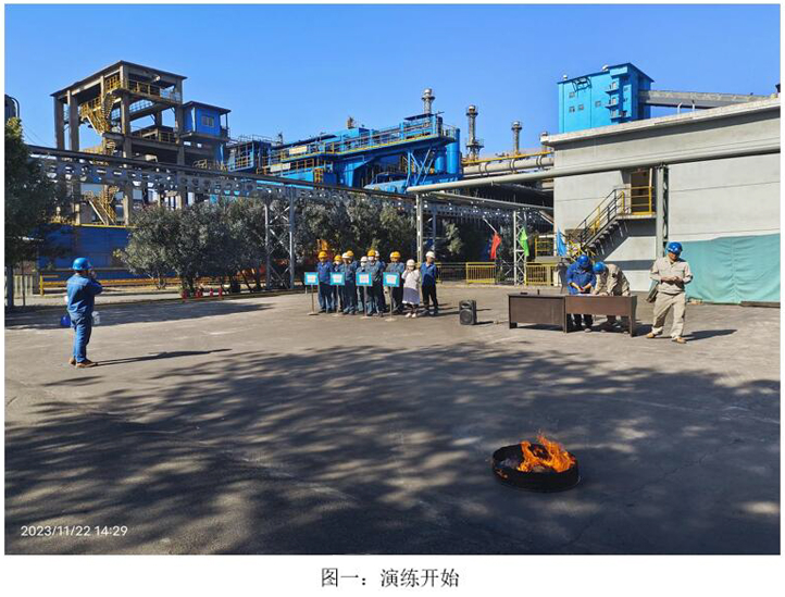 本次演練模擬2023年11月22日10:00分,焦化脫硫脫硝巡檢員發(fā)現(xiàn)焦化6號(hào)門因其他公司職工在外抽煙后,煙頭未熄滅直接丟入綠化帶,將綠化帶內(nèi)干雜草點(diǎn)燃,發(fā)生火災(zāi),后藍(lán)鼎公司現(xiàn)場(chǎng)巡檢員立即上報(bào)并按領(lǐng)導(dǎo)指示警戒、滅火、救治傷員、現(xiàn)場(chǎng)清理、結(jié)果匯報(bào)等措施消除火災(zāi)。