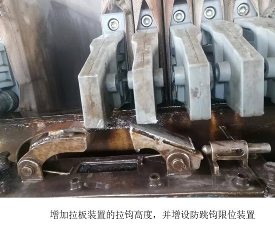 近日,西昌藍(lán)鼎二期壓濾機(jī)因新舊壓板存在約15毫米的高度差,導(dǎo)致自動(dòng)拉板裝置無(wú)法正常運(yùn)作,操作人員不得不頻繁手動(dòng)干預(yù),勞動(dòng)強(qiáng)度顯著增加。面對(duì)這一問(wèn)題,檢修班長(zhǎng)提出通過(guò)提升拉鉤高度并增設(shè)防跳鉤限位裝置的解決方案,使拉鉤能夠靈活適應(yīng)不同高度的壓板。該方案經(jīng)生產(chǎn)部綜合評(píng)估,被認(rèn)定為切實(shí)可行。